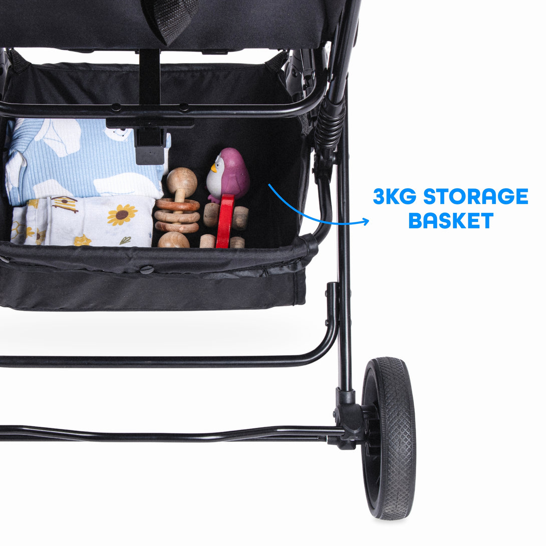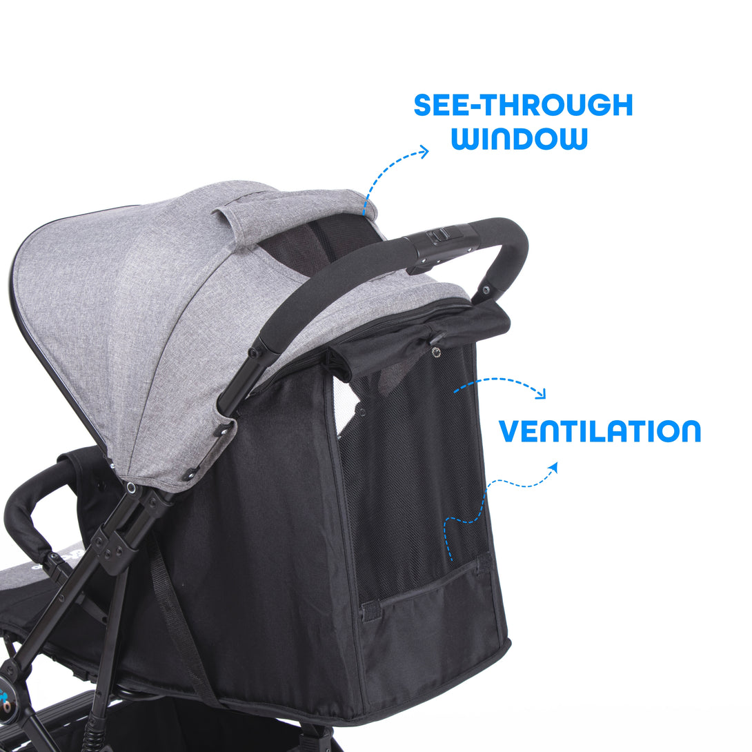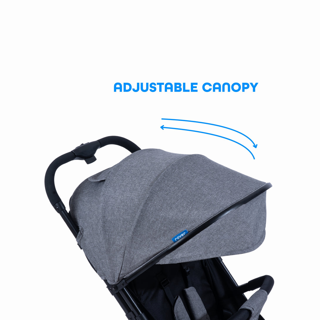Comfort is just as important - Rover’s Oxford fabric canopy and padded seat protect against wear, water, and mould while keeping your baby cozy and cool with breathable panels and a see-through window. With smart storage for toys, wipes, snacks, and parent essentials, it keeps everything within easy reach.