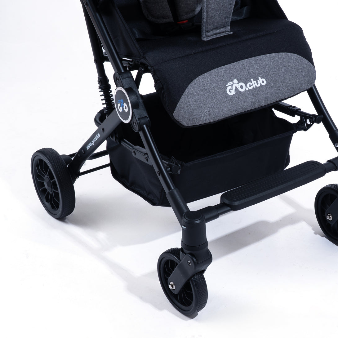 Built for children up to 3 years (17 kg), Rover grows with your child’s changing needs. From flat recline for newborn naps to upright mode for curious toddlers, it adapts seamlessly. Larger wheels, 360° swivel front, and spring suspension ensure a smooth ride, while the linked brake system adds instant safety when you need it.